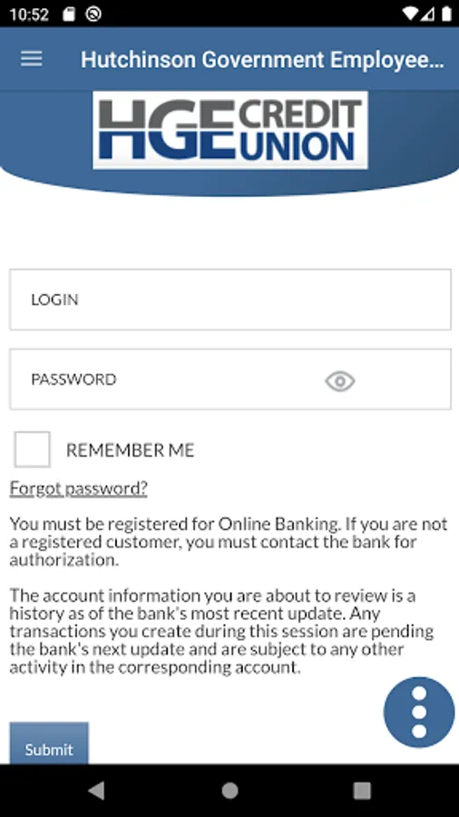 Hutchinson Government Employees Credit Union Mobile App at your fingertips! We’ve made it easy to manage your accounts while on the go. Use the Hutchinson Government Employees Credit Union Mobile App to Check Balances, View Transactions, and Search for specific transactions by amount/date, Transfer Funds/Make Loan Payments. This is a free service for members, however, data rates may apply from your wireless carrier.