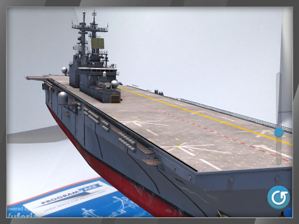 Simply hover your device camera over the specially designed trigger blueprints and watch these images come to life. Rotate and zoom the AR objects on the screen with your fingers to spot small cogs of the control unit, examine the inside of the Glock, and explore even the tiniest microfractures of the military ship. Using MilitAR, you can observe superimposed 3D content caught from printed material, an interactive screen, or any item that allows displaying of the trigger blueprint.