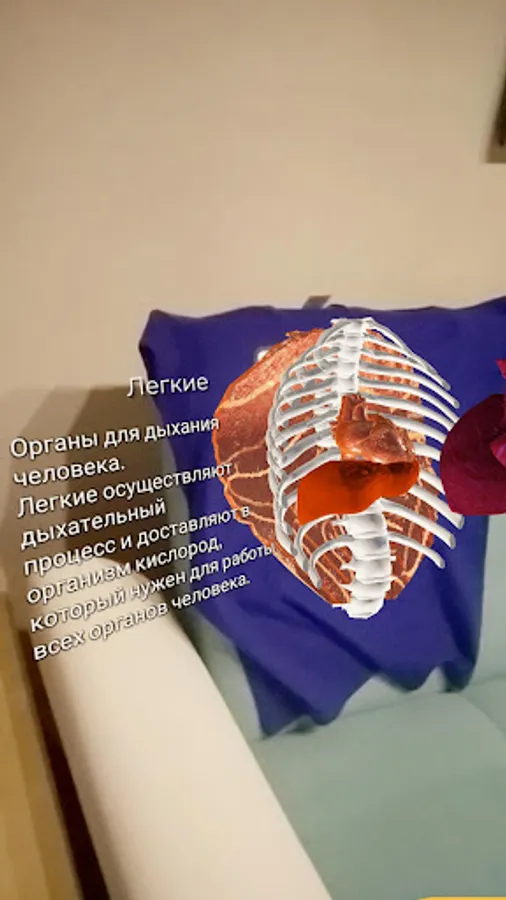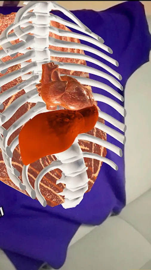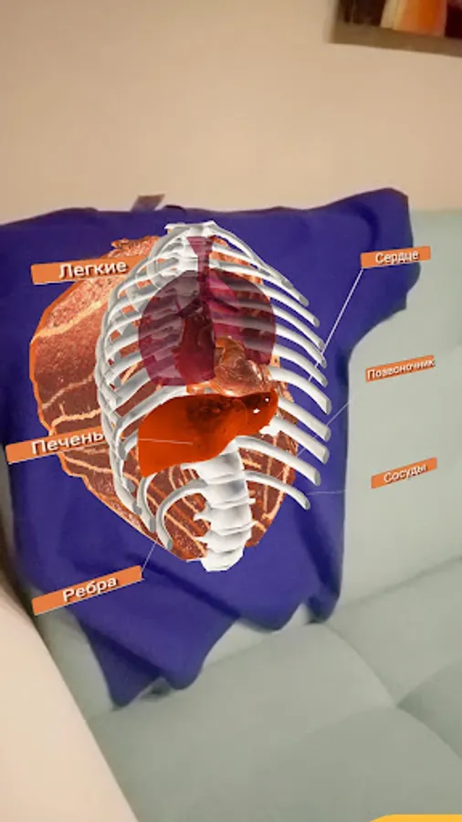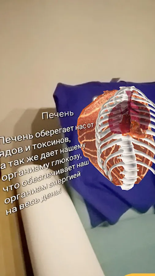 When you hover your device on a T-shirt marker, the person’s internal organs will appear. When you click on a particular body, a description will appear. This application is designed to teach and study the structure of man.
