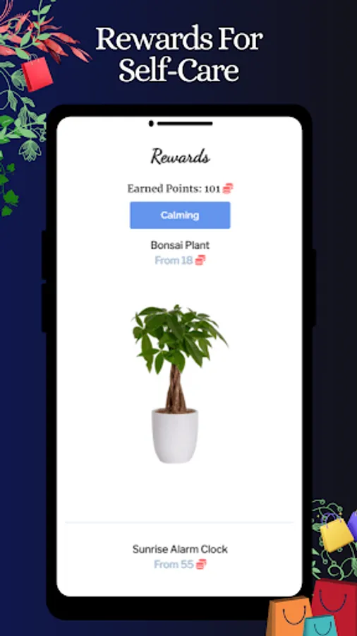 As you progress on your journey to better mental health, you'll earn rewards that are shipped right to your door. From gift cards to your favorite online stores, to our exclusive Calm & Hope gift boxes, there's something for everyone.