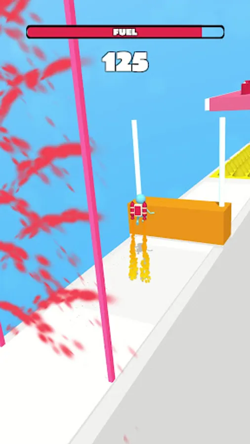 Your jetpack changes colors as you go. For this reason you need to fly up or down to get the right fuel cans and fill up, so you can keep going.