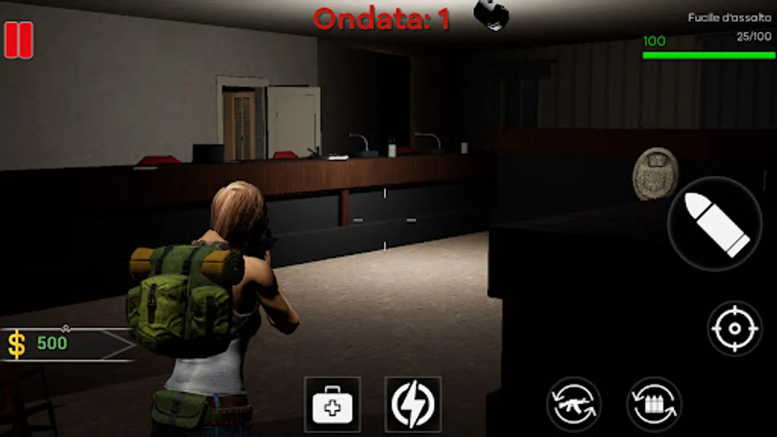Sopravvivi alle ondate zombi e accumula soldi da spendere per nuove armi.