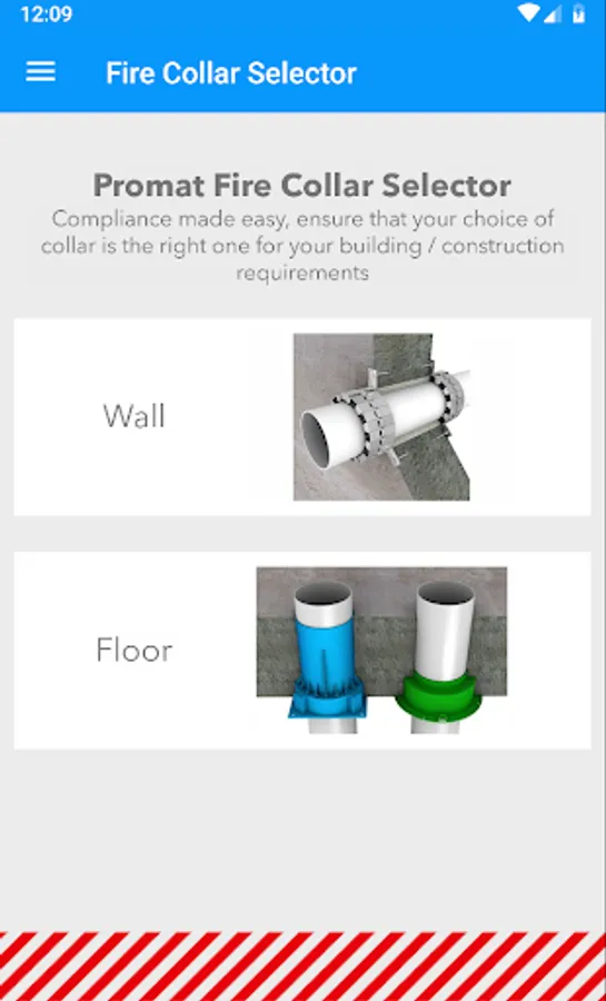 Promat Australia is the market leader for fire collars in Australia, with a large variety of products and solutions. The app allows you to input your specific requirements in terms of building element, pipe size, pipe type and Fire Resistance Level. Based on these selections the app will tell you exactly which product best suits your situation.
