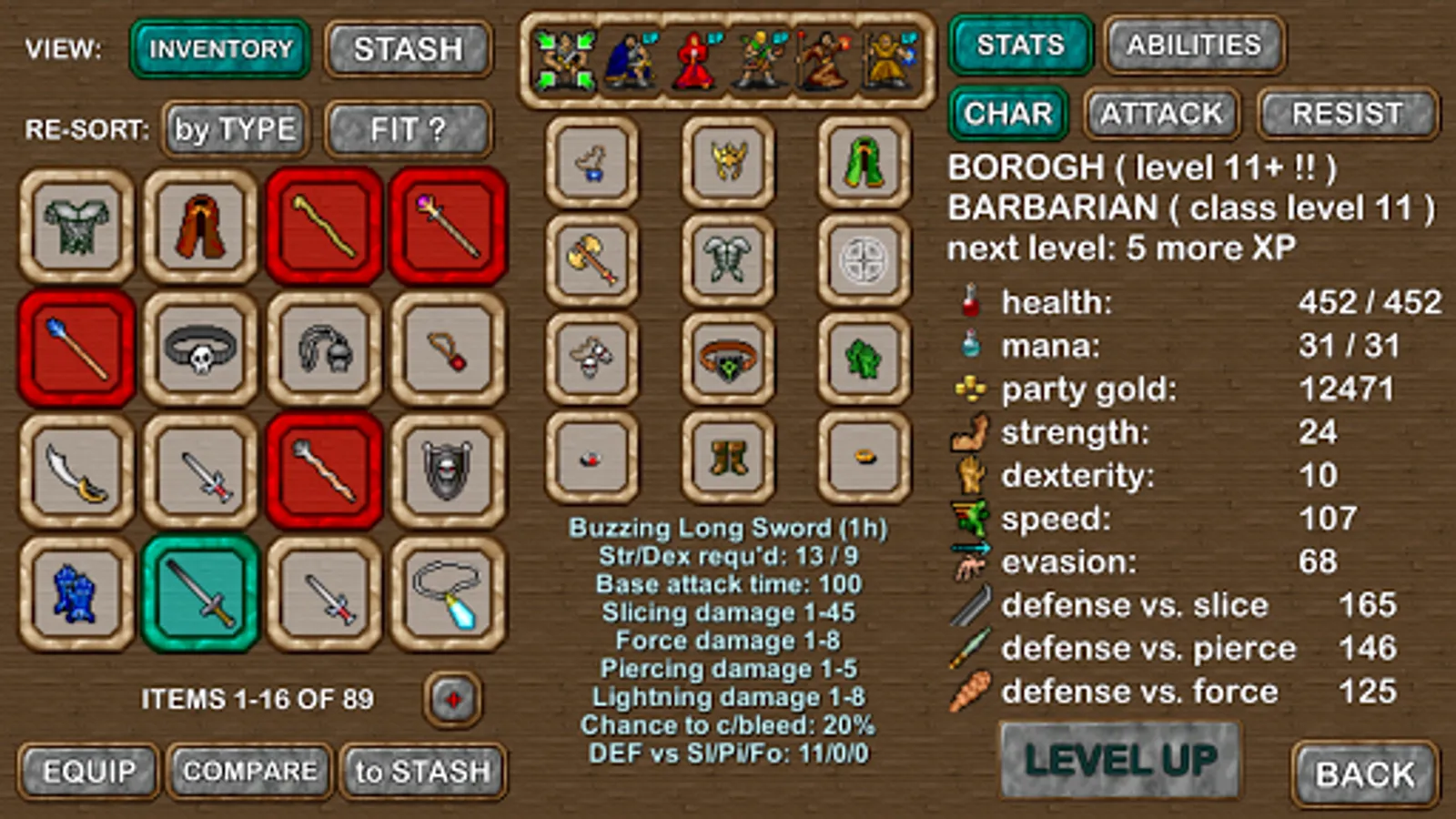 - control a party of 6 characters, which you can generate using 9 starter classes and unique character features