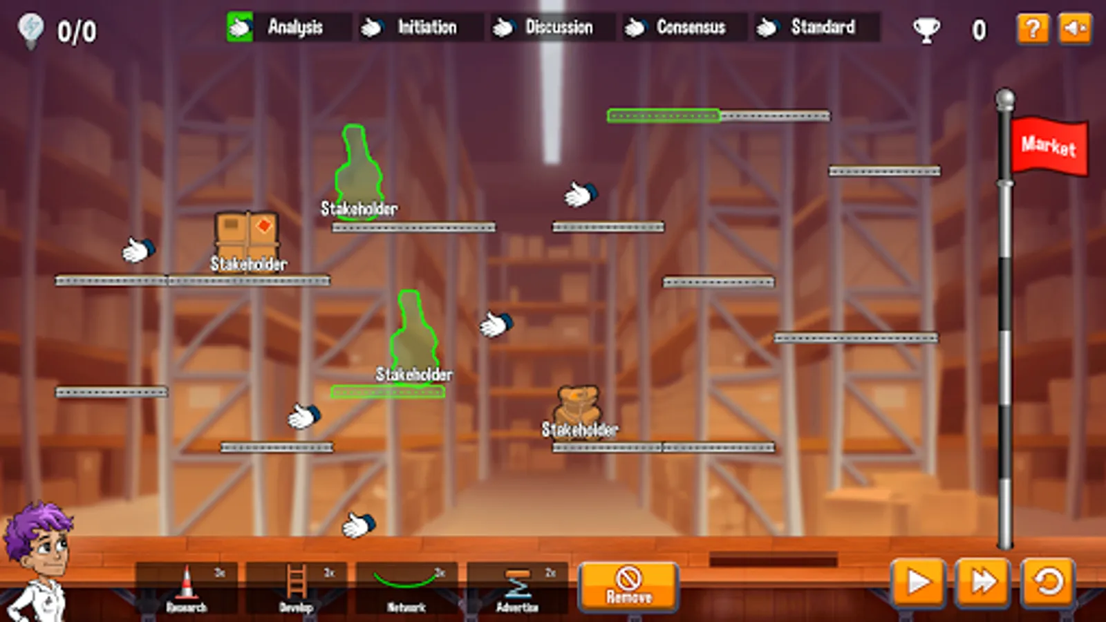 Idea Mania is a single-player puzzle-plattformer game highlighting the process and benefits of standardization.