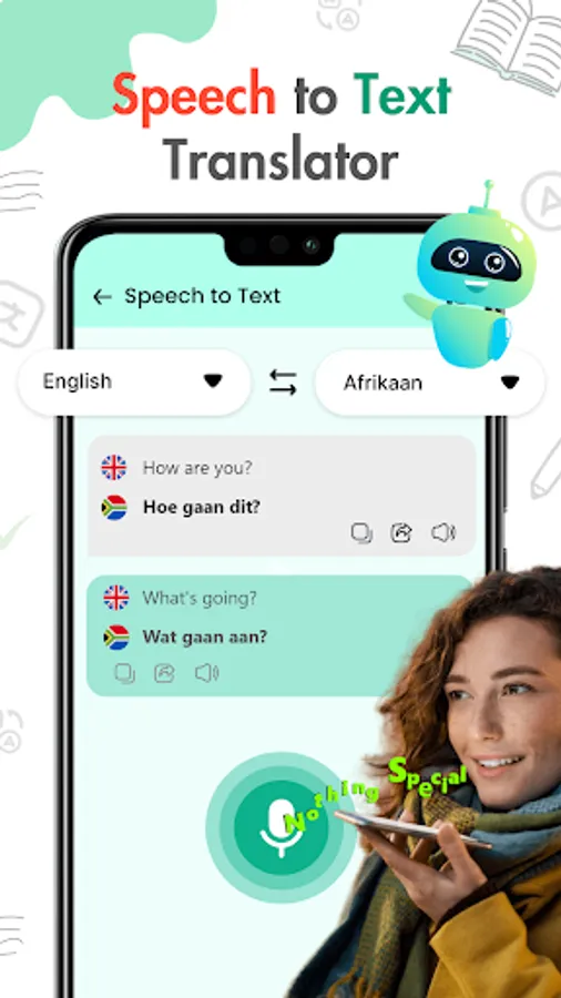Voice translator or speak and translate helps you to speak in your native language and get the translation into any language. Press the mic and speak whatever you want and get translation in text form.