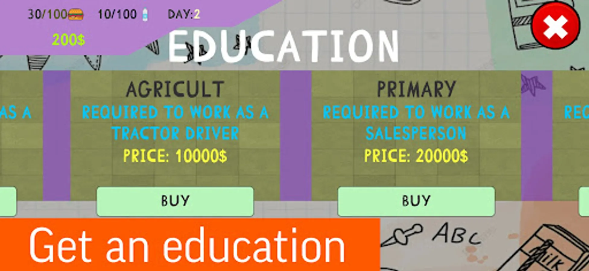 Homeless Survival in Russia - Life Simulator. The game will play the role of a homeless person. Earn food by working at jobs, get an education. Jobs are available in the game, such as: Taxi Driver, Lawyer, Cook, Investor, Janitor, Promoter, Trucker, etc.