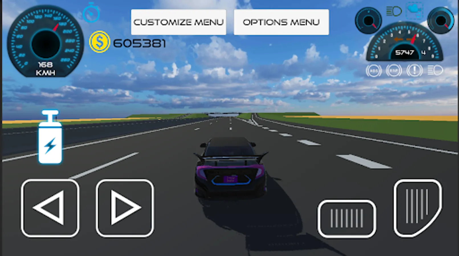 - Fully Modify Car In-game with wheel change, exhaust smoke, different Camera Angles, Head Lights, Indicators, Nitros, Steering Wheel Mode
