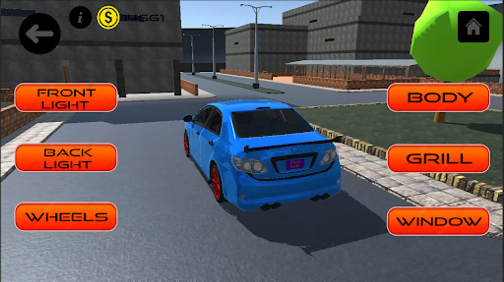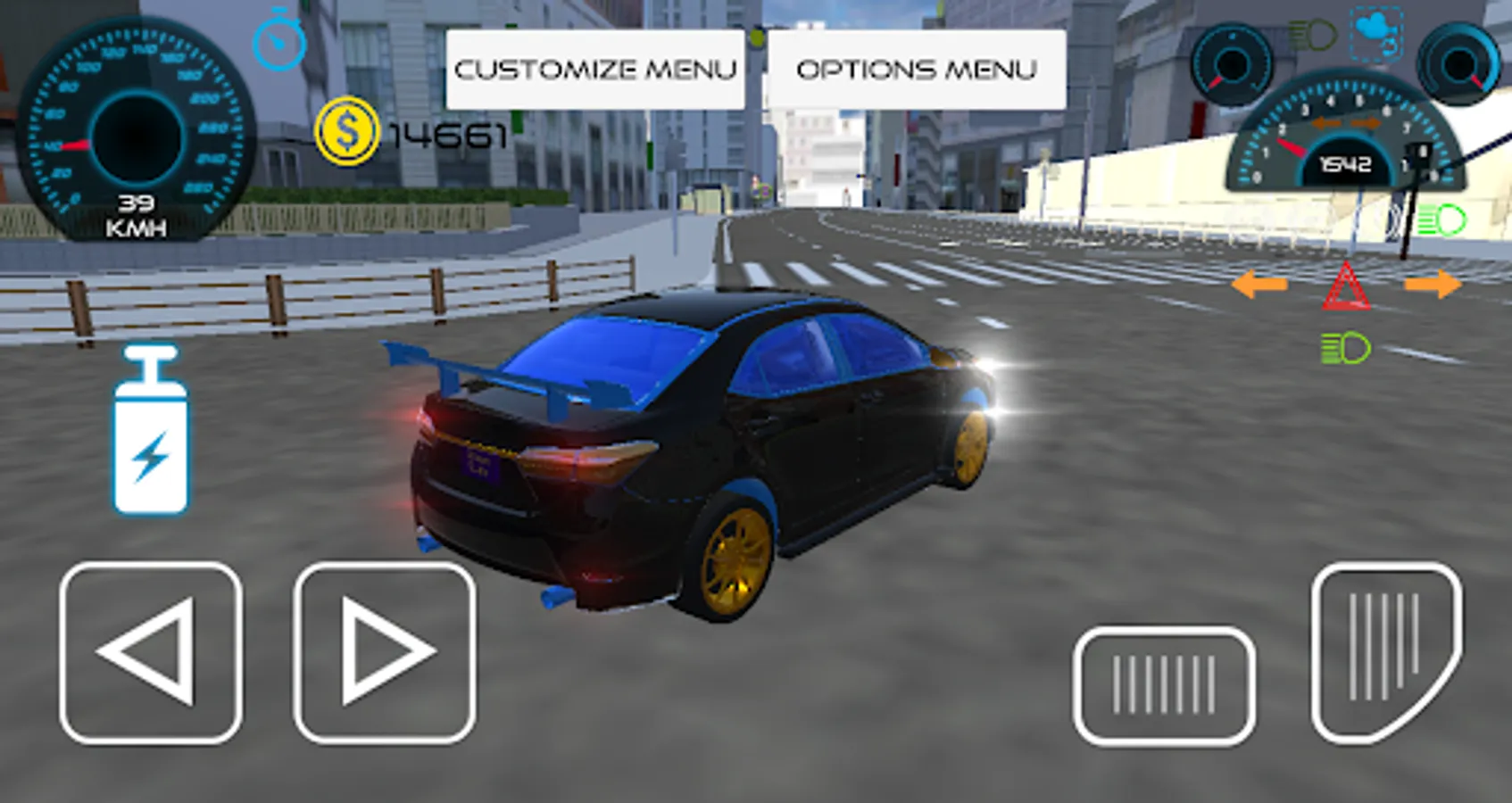 Fully Modify Car In-game with wheel change, exhaust smoke, different Camera Angles, Head Lights, Indicators, Nitros, Steering Wheel Mode