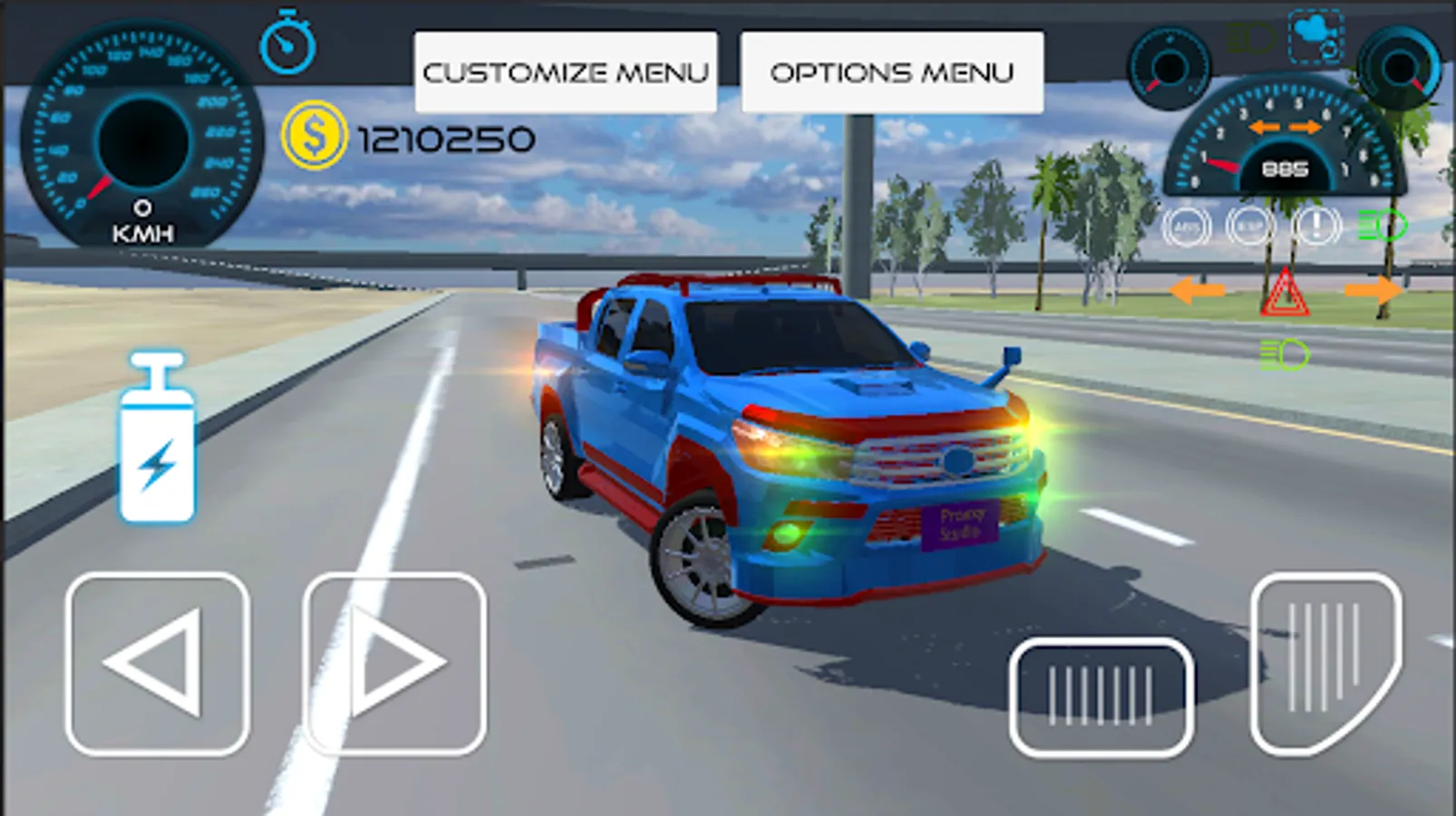 Fully Modify Car In-game with wheel change, exhaust smoke, different Camera Angles, Head Lights, Indicators, Nitros, Steering Wheel Mode