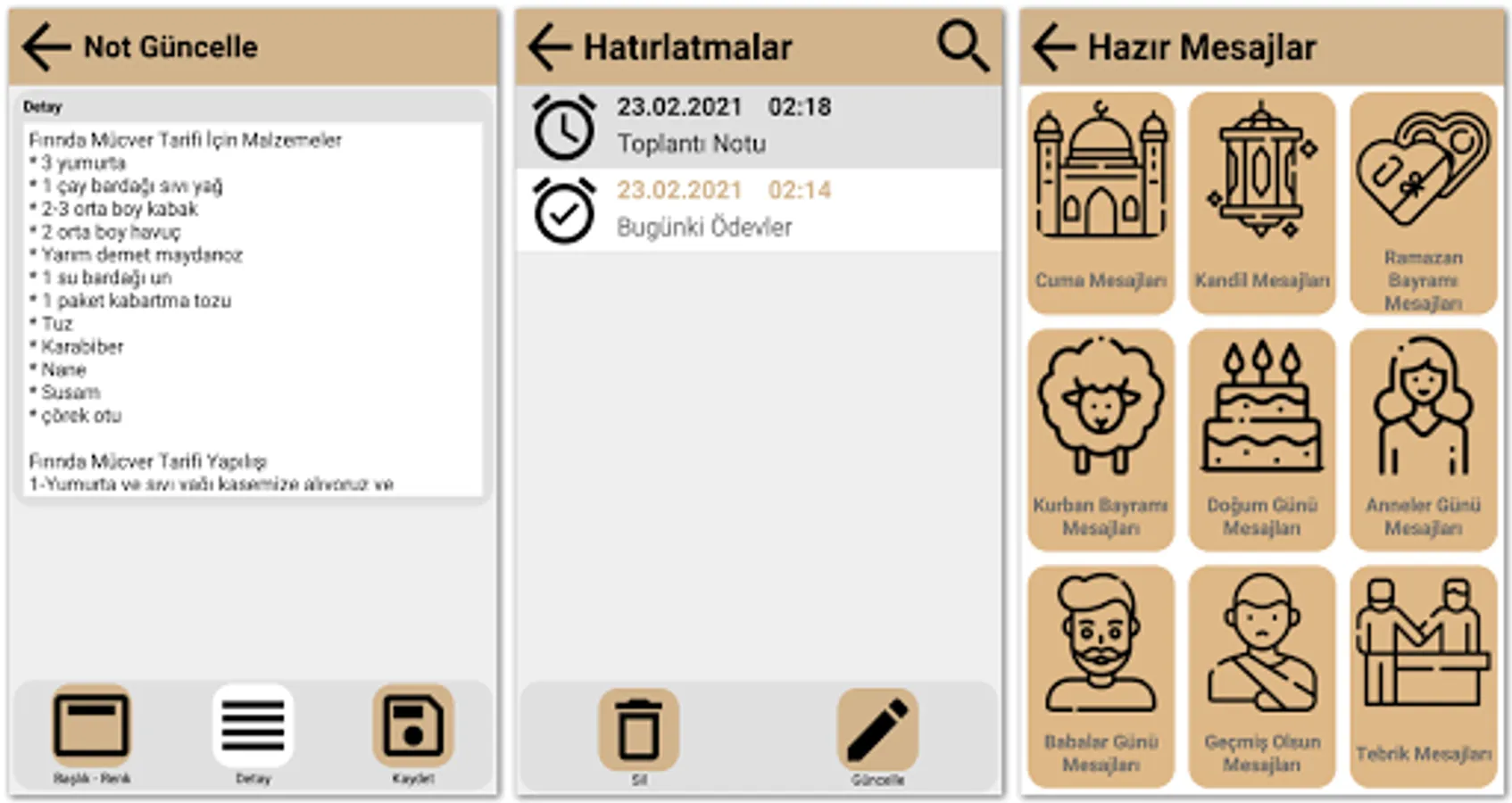 - Reminder as a notification message, sound and vibration when the notes are due.