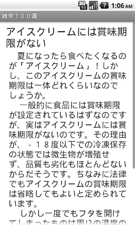 このアプリでは、世の中に数多くある雑学やトリビア、身近な疑問の中から、ついつい誰かに話したくなってしまうような話を100個、厳選して集めました。