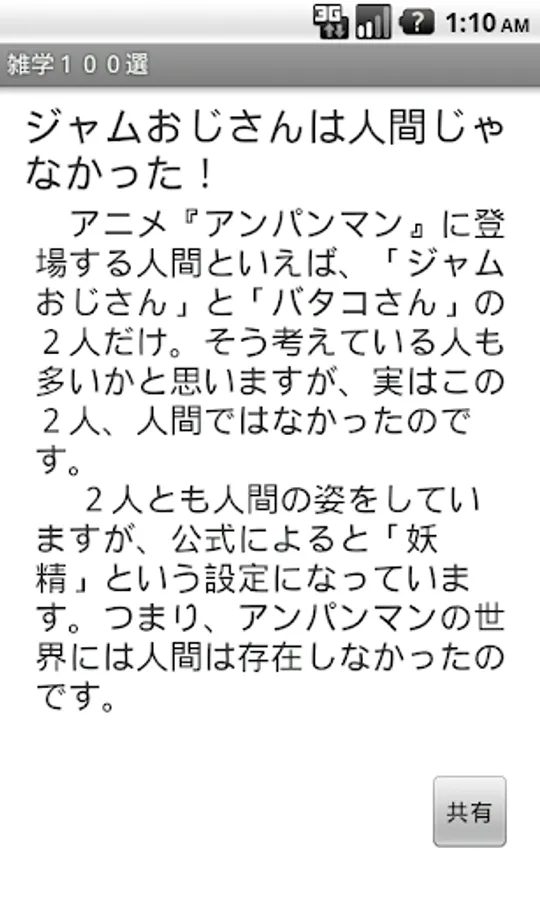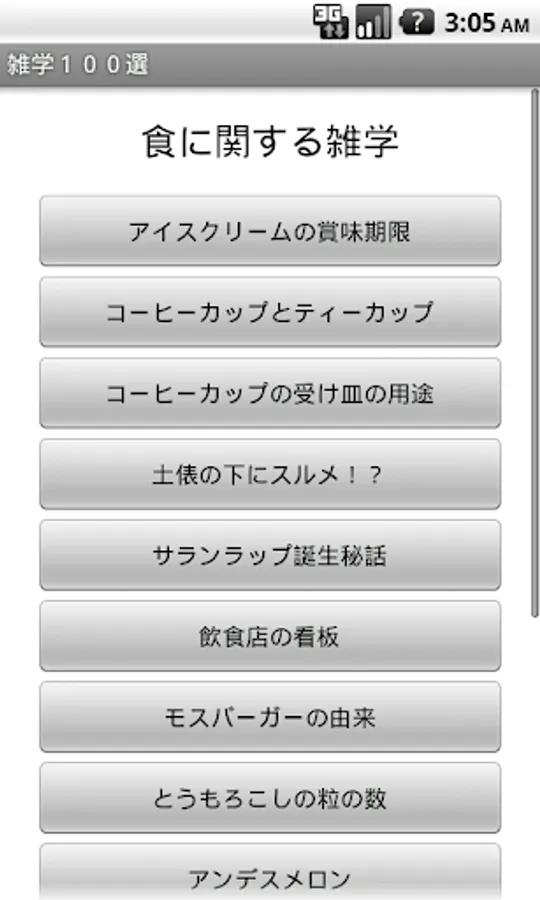 以下はこのアプリにある雑学をまとめたもののリストです。