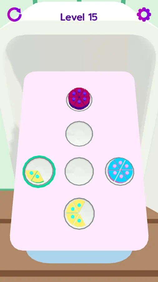 ✔️ In this color match game you should sort cake slices and stack them in fridge