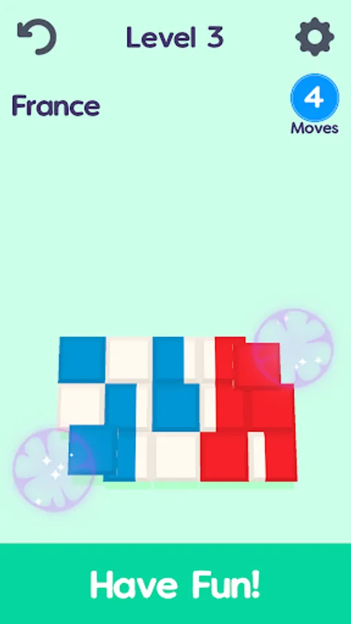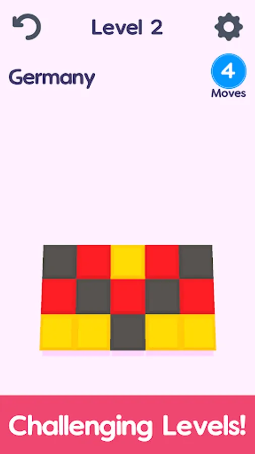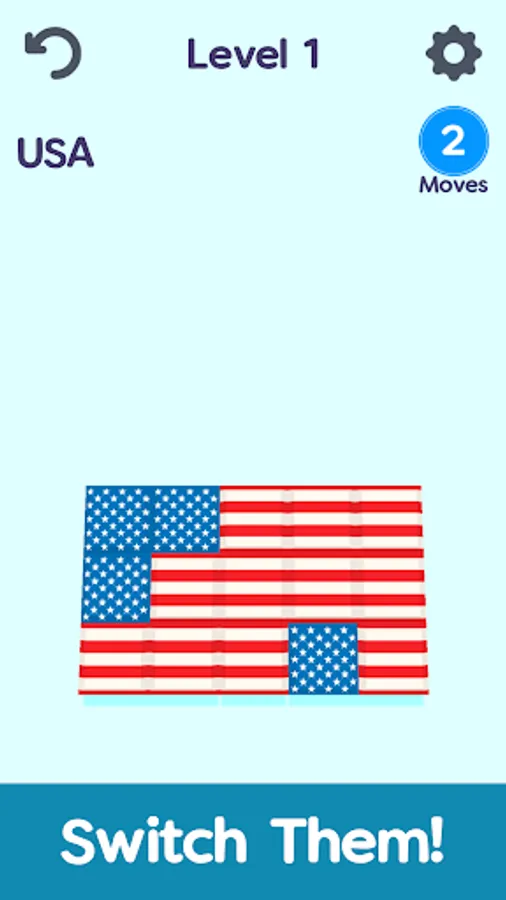 ✔️ In this flag guessing game you should switch color block to solve the country puzzle before you run out of moves!