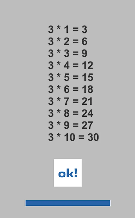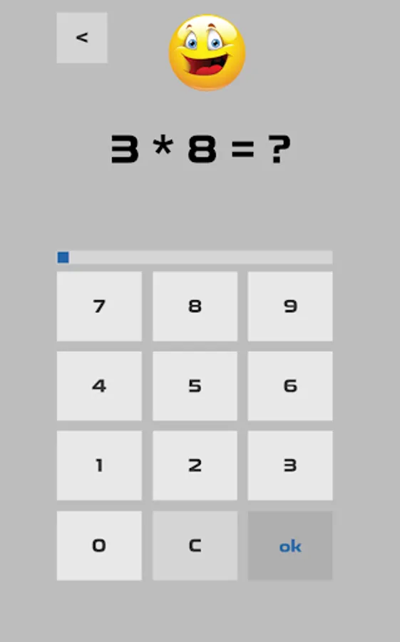 * Student (for beginners) - the player gives the result of multiplication or division. For every good answer one point is awarded, for each wrong answer loses one point. Obtain a specific number of points to proceed to the next digit. With each digit there are more points to gain, so the player repeatedly repeats and fixes the action.