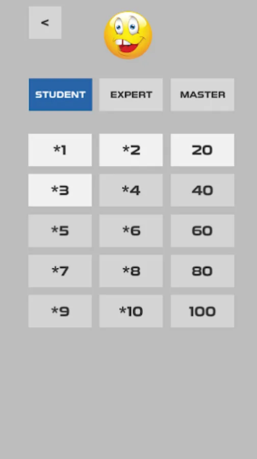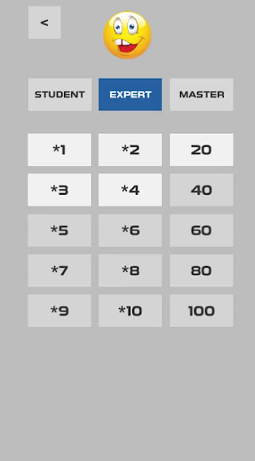 Expert - the player gives the result of multiplication / division or has the result of multiplication / division giving the missing number. The scoring system is the same as the "student" level.