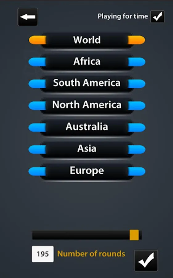 - choose one of the continents or the whole world: Africa, South America, North and Central America, Australia, Asia, Europe