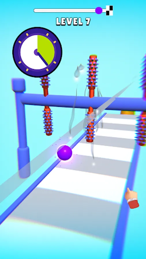 Have you ever wanted to continue on your way without being stuck by obstacles while playing a game? Then, this game is for you! Because in this game, we can slow down the obstacles for non-stop road and non-stop fun. But beware, when to slow them down is very important for you. If you don't use your time wisely, you will never reach the end. How confident are you with your timing skill? How many levels can you pass? "Non-stop balls" are waiting for you to test your skills.