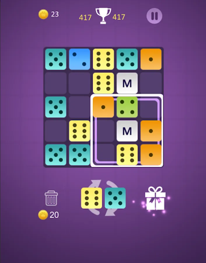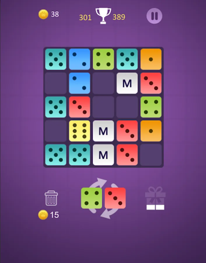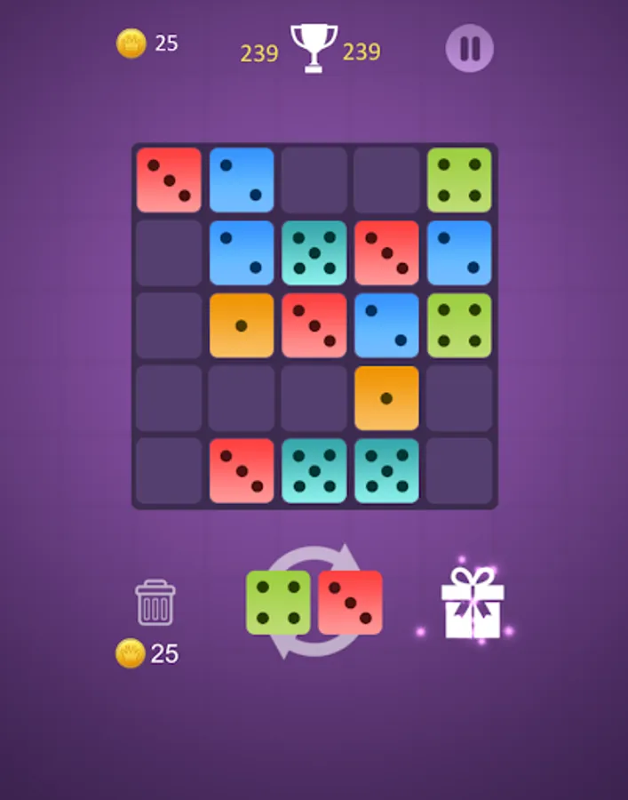 - Place three blocks(or more) with the same number & color next to each other to merge them, horizontally, vertically, or both.