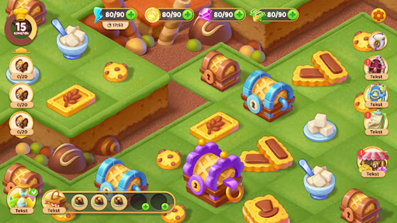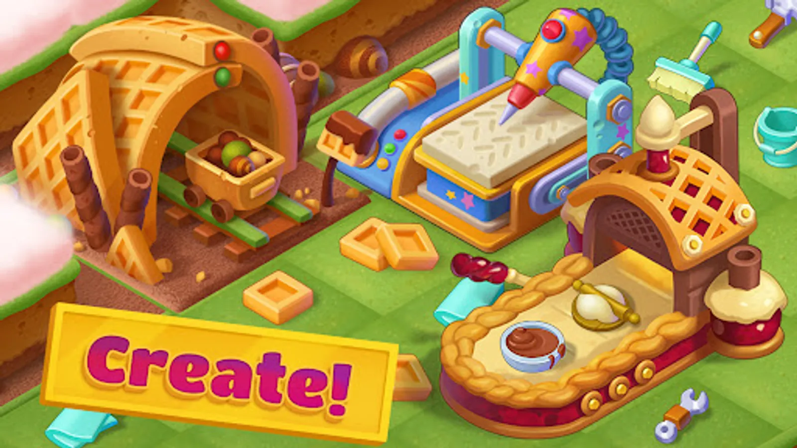 Explore and restore themed areas, use ancient machinery, mines, obtain resources and combine desserts!