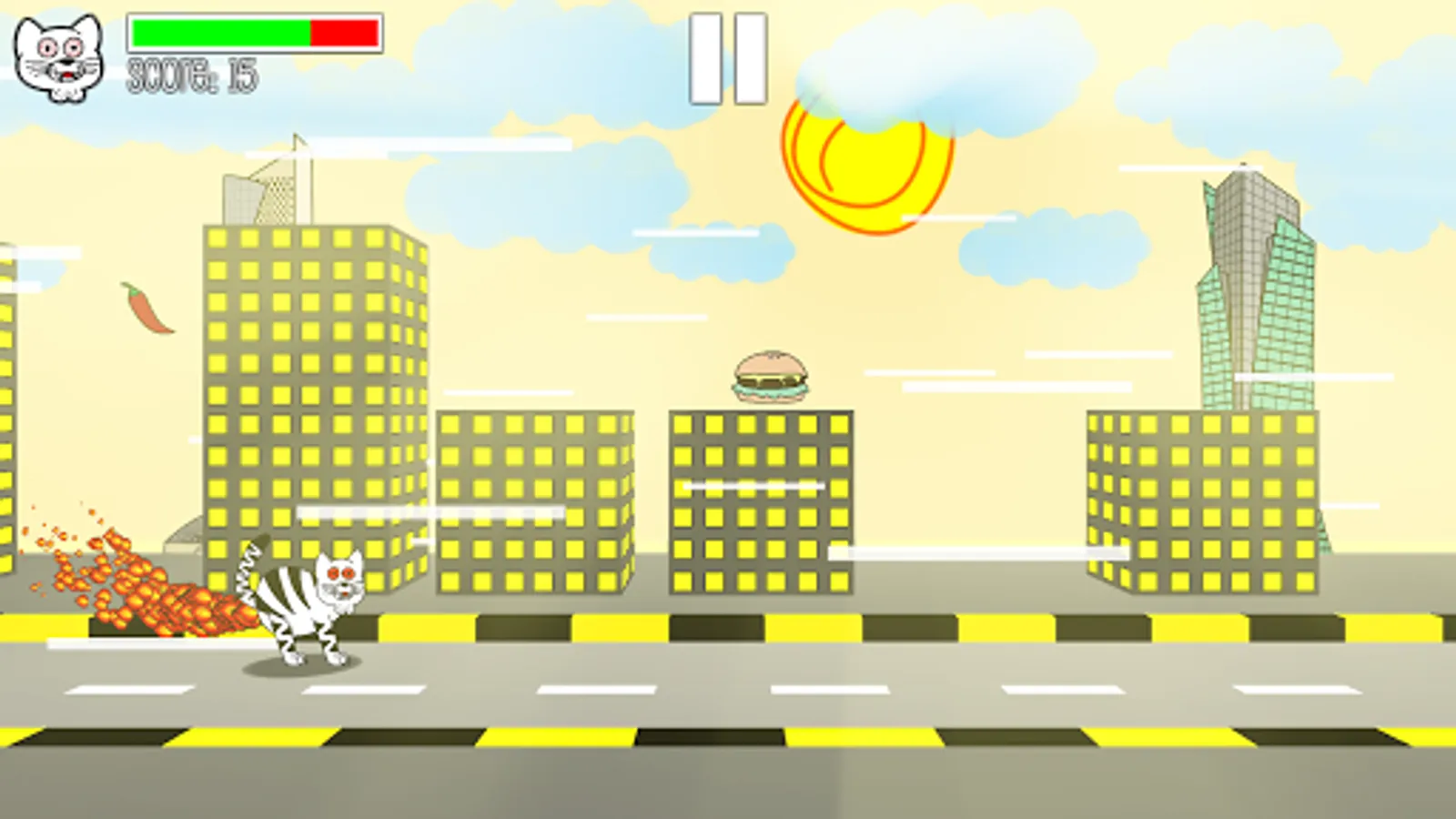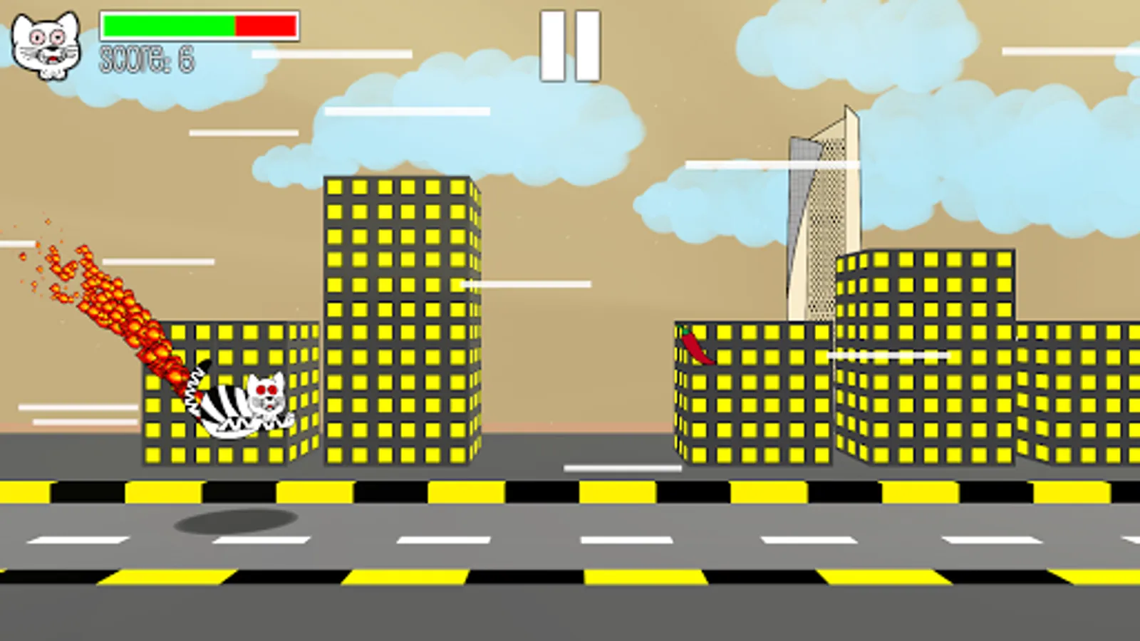 This is an endless runner kind of game that doesn't make sense where you're the "Stupid Cat" and have to run as far as you can without running out of energy.