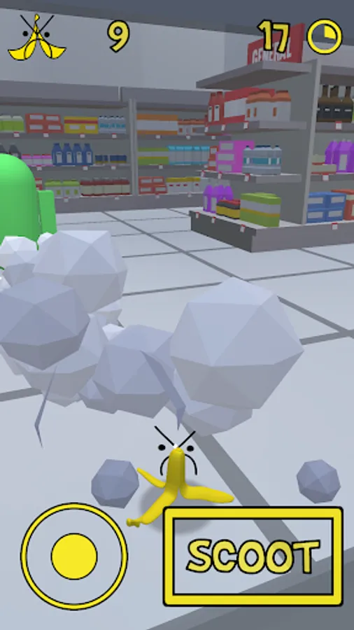 IT’S LITERALLY JUST A BANANA PEEL WITH AN ANGRY FACE DRAWN ON IT THAT GOES scoot-scoot-scoot ACROSS THE FLOOR AND TRIPS RANDOM PEOPLE AND RUINS THEIR DAY.