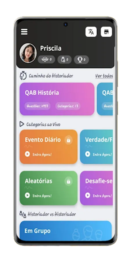 Desafie a Comunidade (Modalidade ainda em desenvolvimento): Desafie a comunidade do QAB História em um teste de dez questões para cada, sendo as mesmas para ambos os jogadores, com questões geradas aleatoriamente. O desafiante com mais acertos vence.