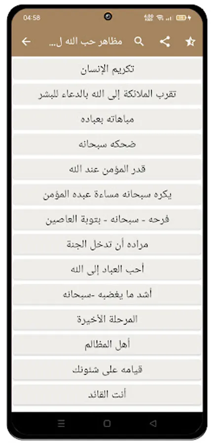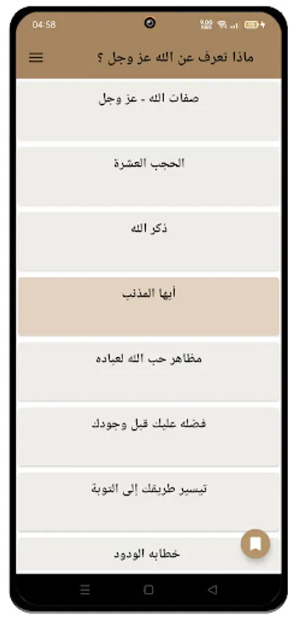 وأول ما يجب على المسلم فى الإسلام ويحتوى التطبيق على مقالات نصية وفيديوهات للتعرف على الله تعالى بصفاته ورحمته وعلمه وقدرته وخطابه الودود وفضله على الإنسان حتى قبل وجوده