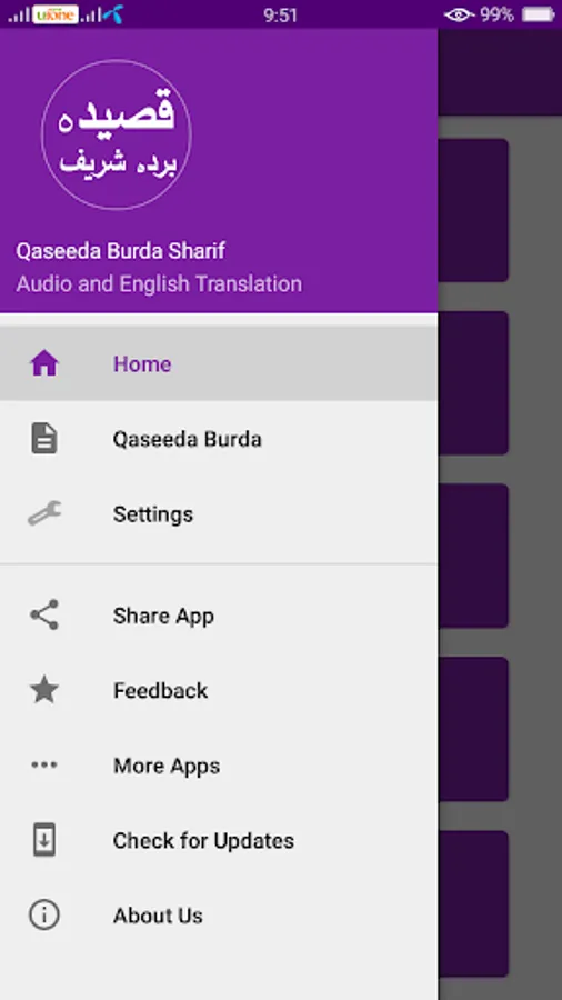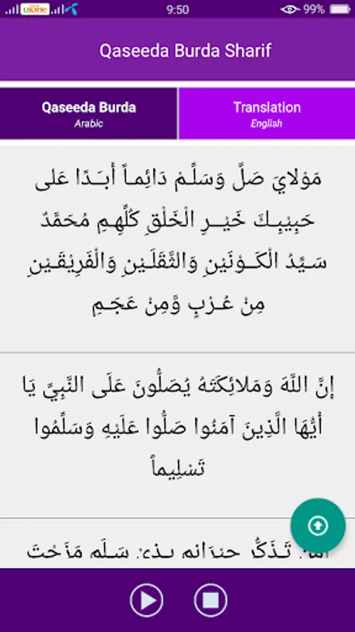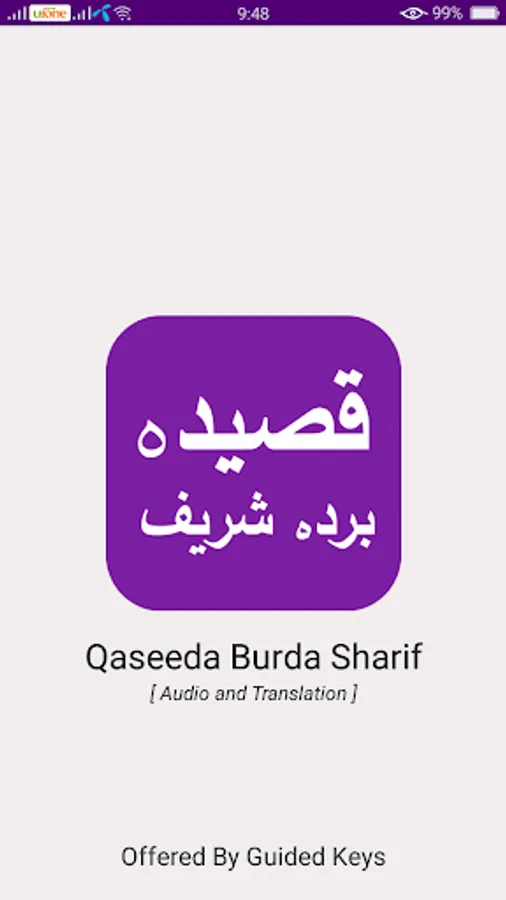 Qaseedah Burdah Sharif (قصیدہ بردہ شریف ), is an application that contain complete Qasida Burdha Sharif with beautiful recitation and English Translation. Qasida Burdah Shareef is an Arabic Naat written by the eminent sufi, Imam Al-Basire of Egypt. Once it is recited by the NaatKhwan, it become the most favorite, and got a lot of popularity amongst the Muslim world.