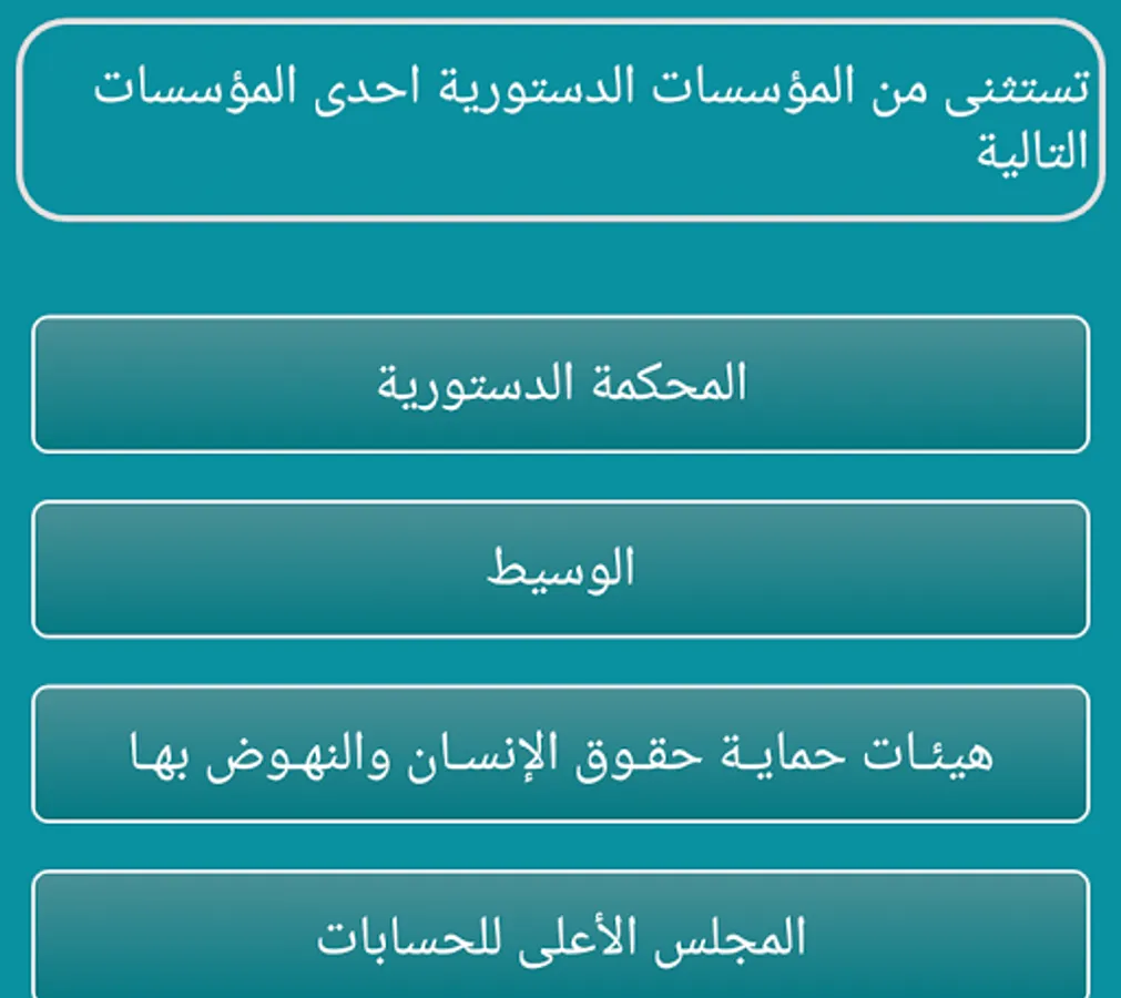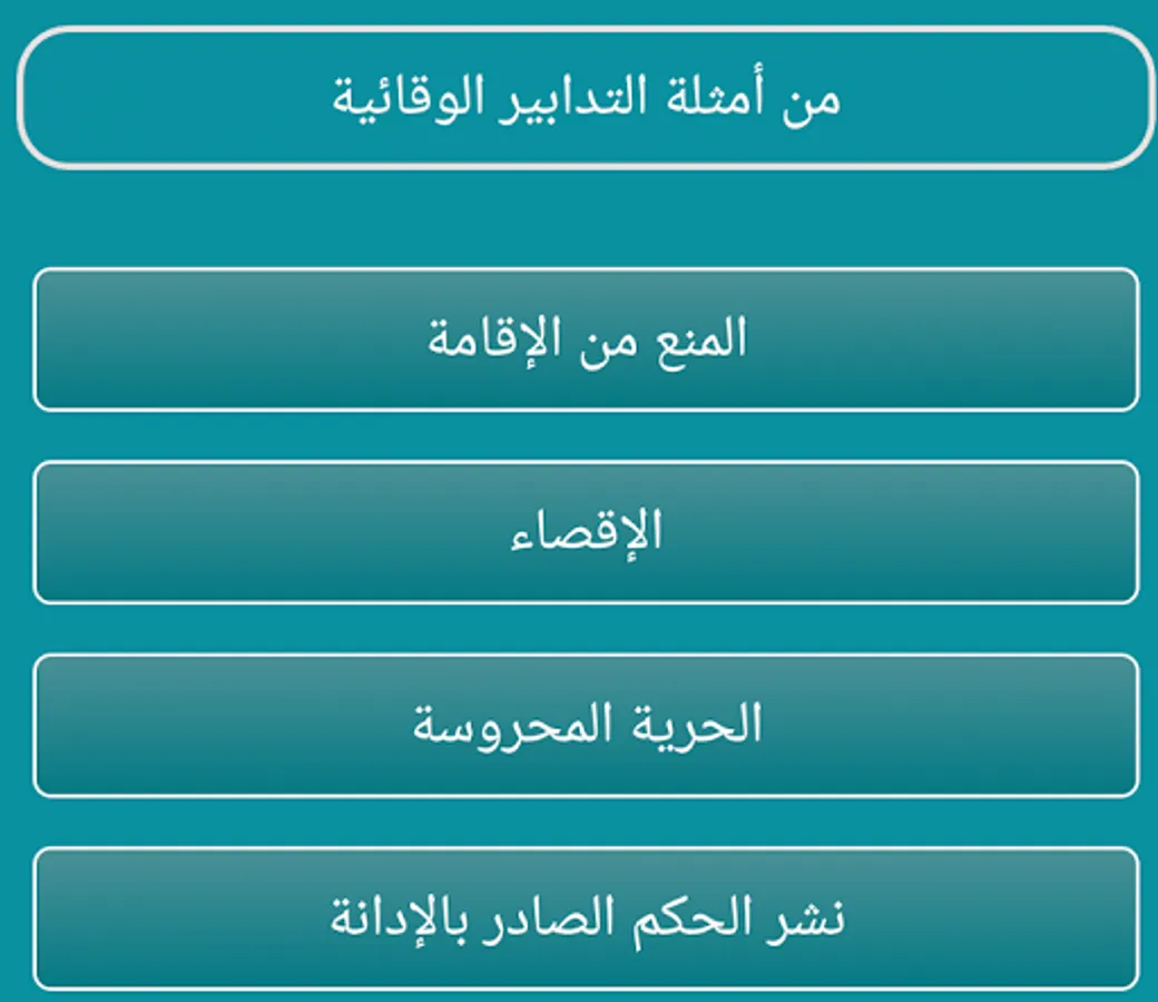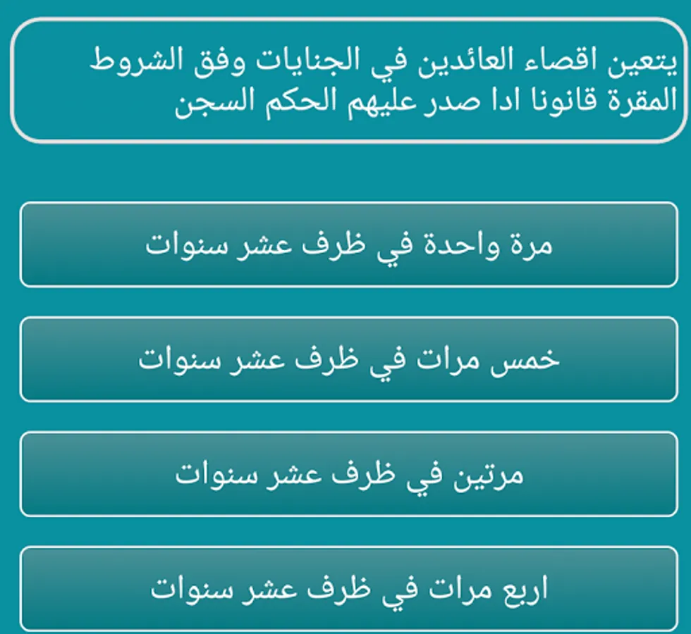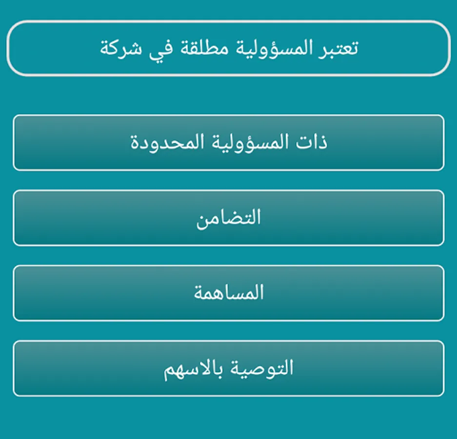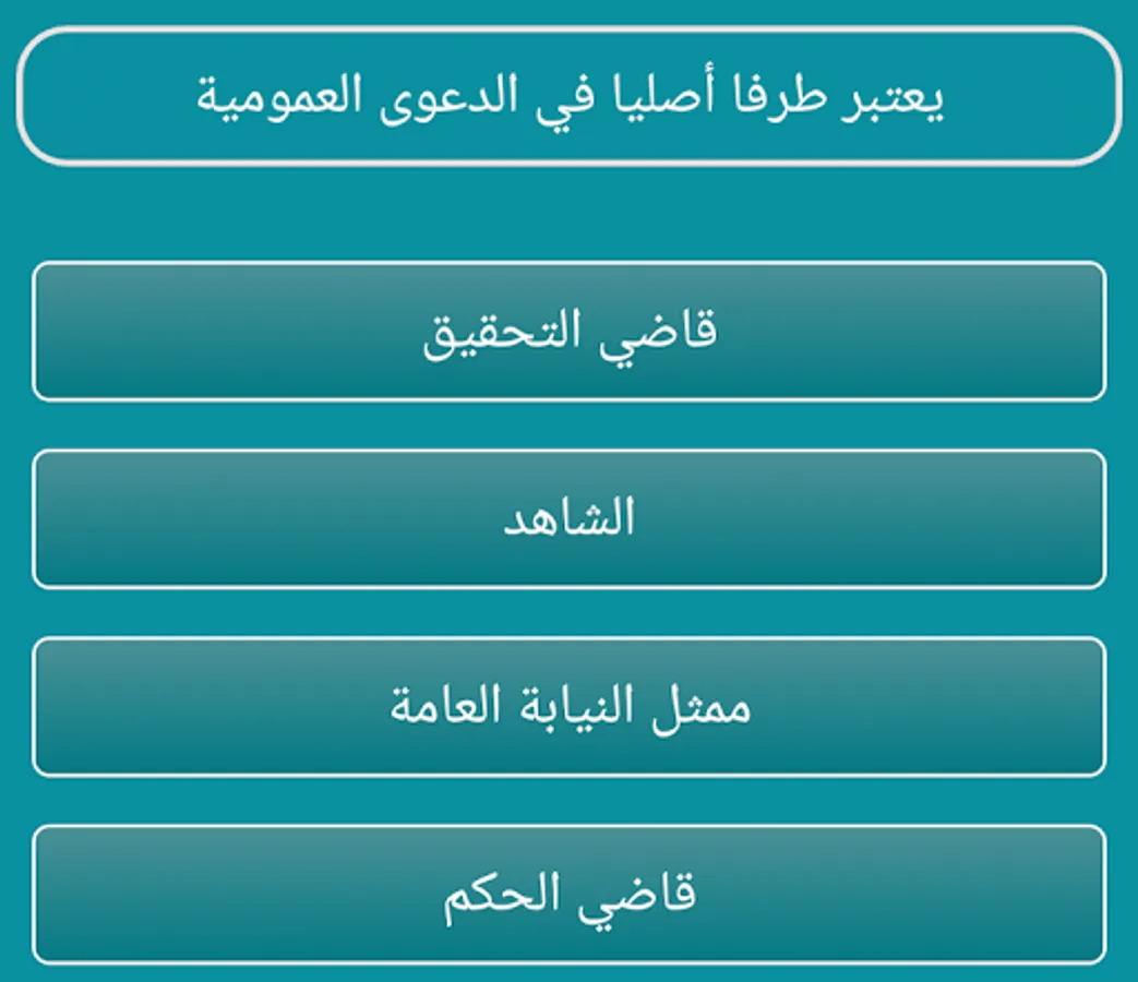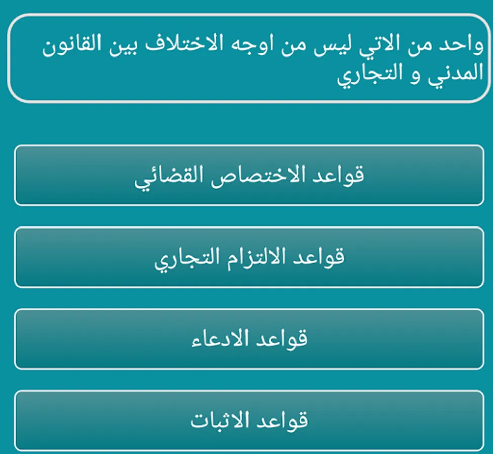 Legal questions and answers - multiple-choice questions Legal information A game to measure your knowledge of the law by learning to read questions and answer questions by choosing the correct answer from the four answers