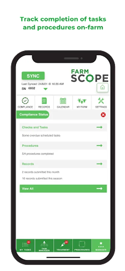 - Track completion of tasks and procedures on-farm