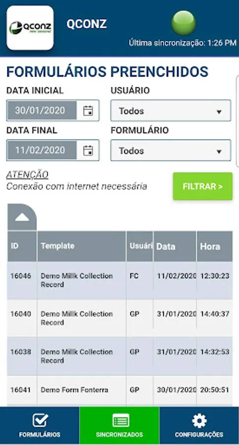 QCONZ SYNC conta com uma interface web que inclui um desenvolvedor de templates, gestão de usuários, exportação de dados para Excel e automação de dados.