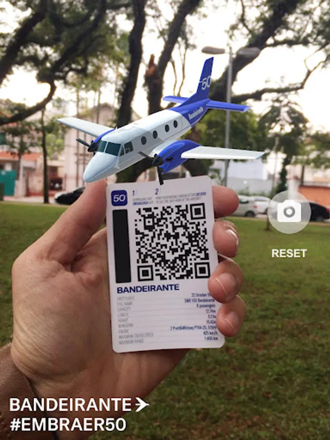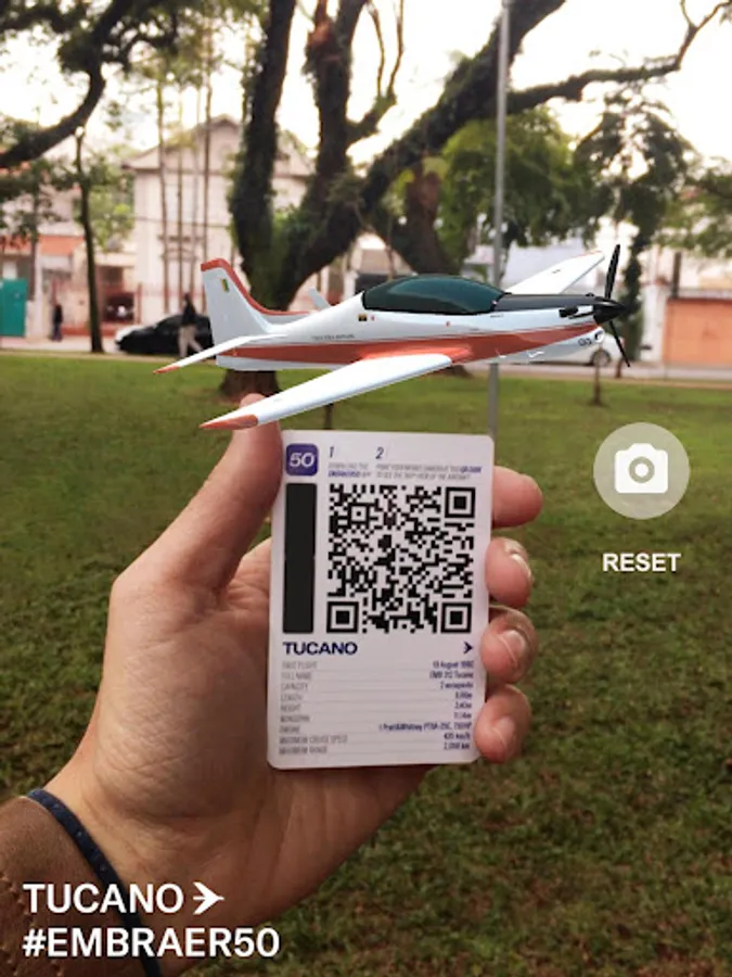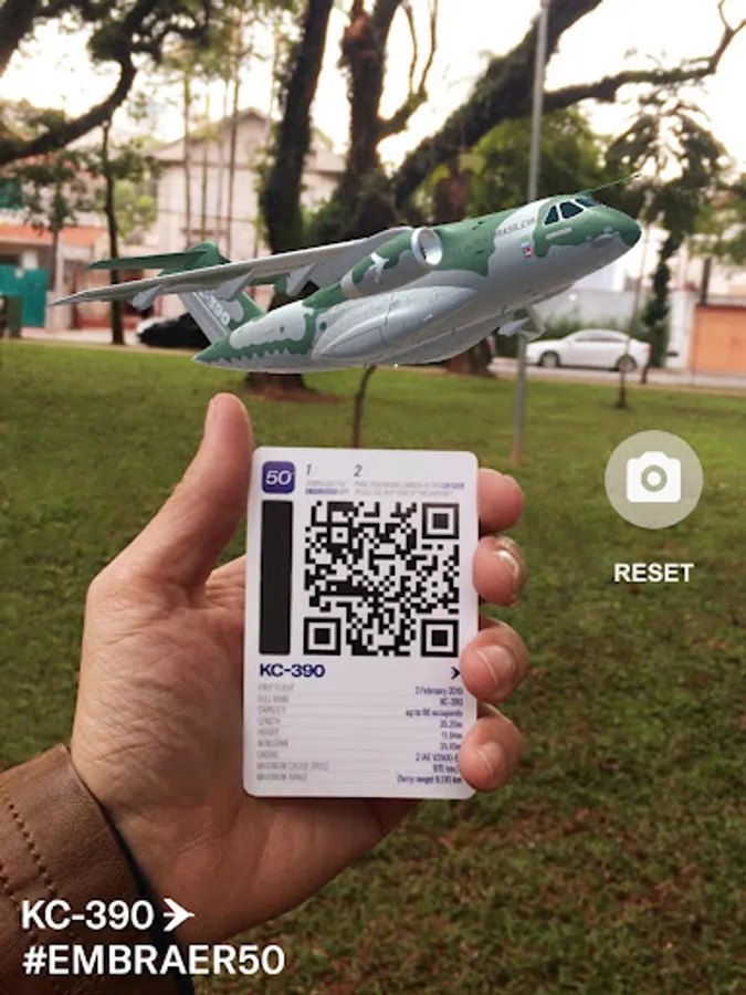 Embraer50 is a mobile app that offers you a 3D Augmented Reality with the 360º view of some of Embraer’s aircraft from the past, present and future!