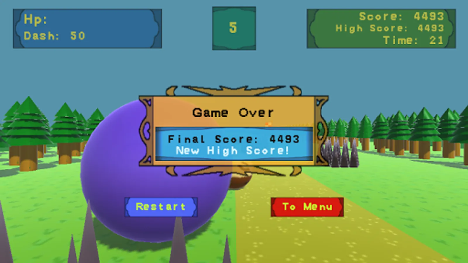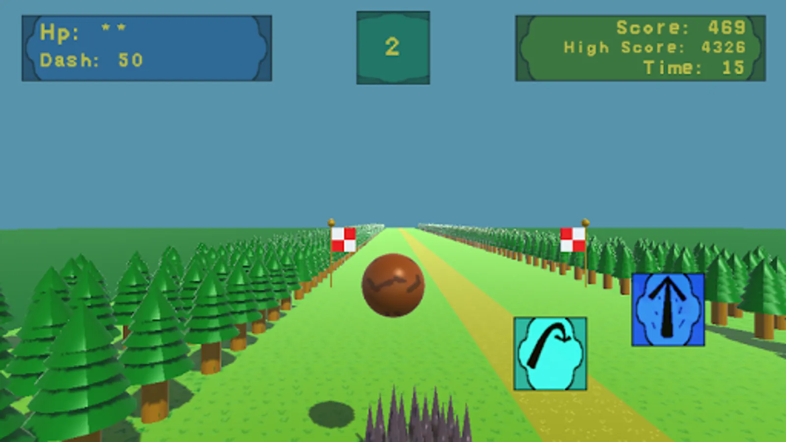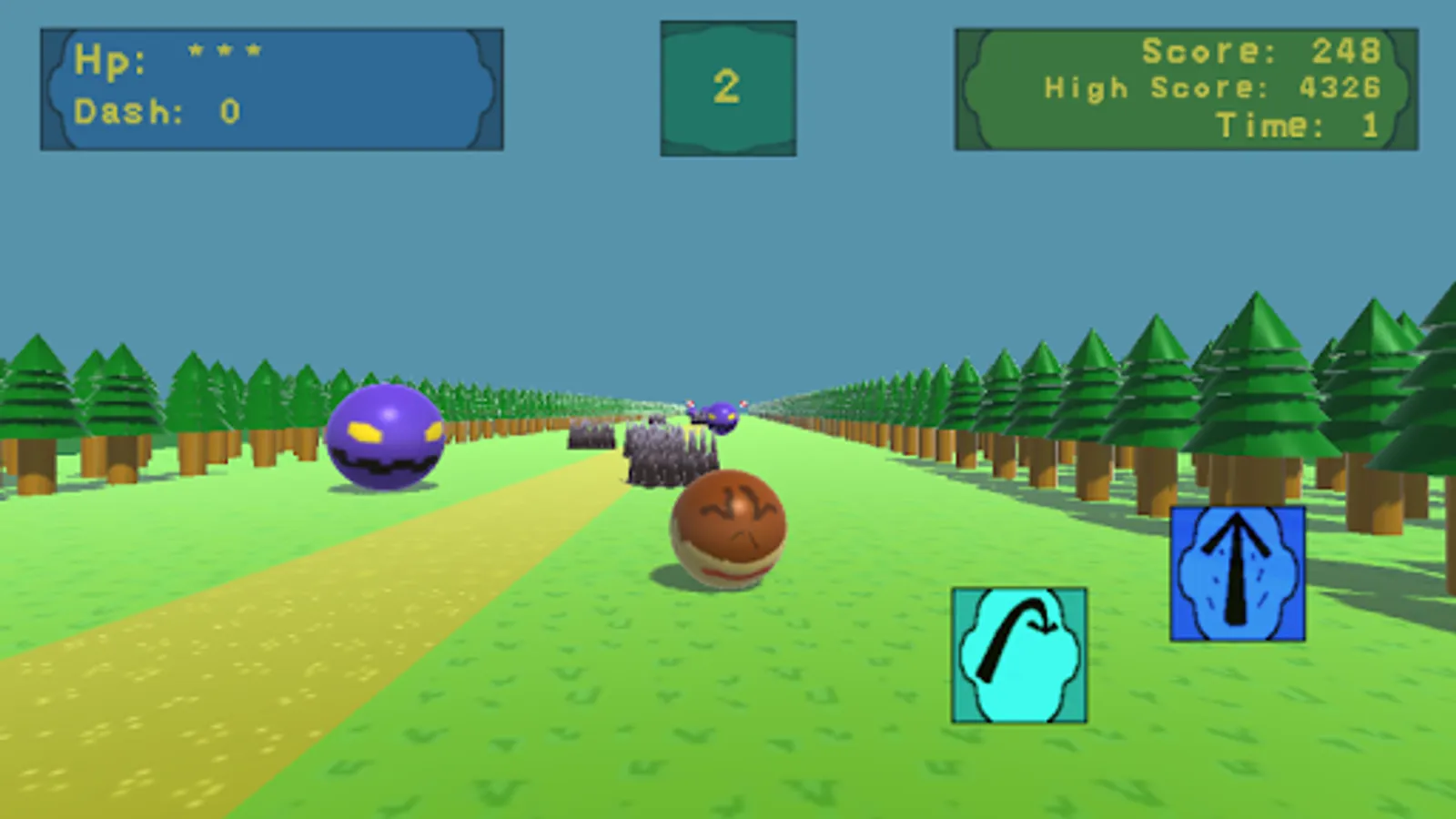 Roll, jump and dash your way along an endless path, littered with sharp spikes and evil creatures (purple balls with eyes and mouths). How far can you roll?