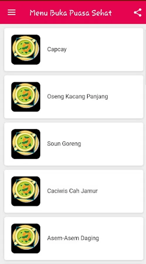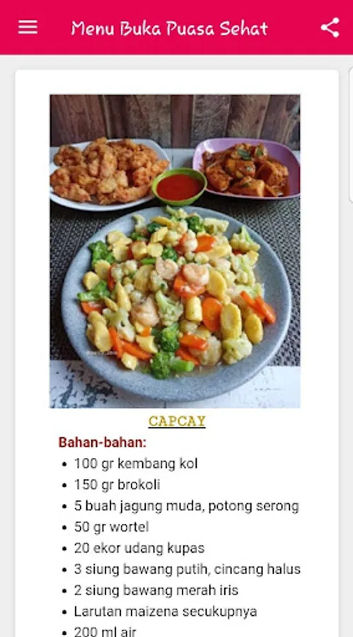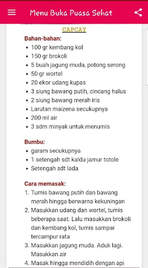 Therefore, we make the application as a guide for those of us who sometimes feel confused about determining menu choices when breaking the fast. Healthy Fasting Menu application can be an option for us. Inside there are various recipes that we can use as a guide in cooking the breaking fast menu. Of course these healthy menus are easy enough for us to apply even for those of us who are unfamiliar with the world of cooking.