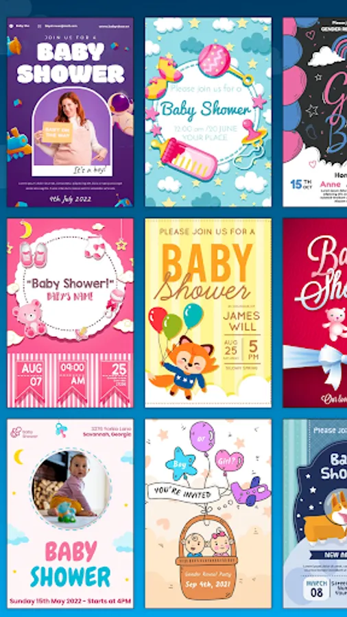 If you have no graphic designing knowledge then use Baby Shower Invitation Card Maker app to design stylish customize Baby Shower Party Invitation Cards to invite friends, relatives, colleagues and family members.