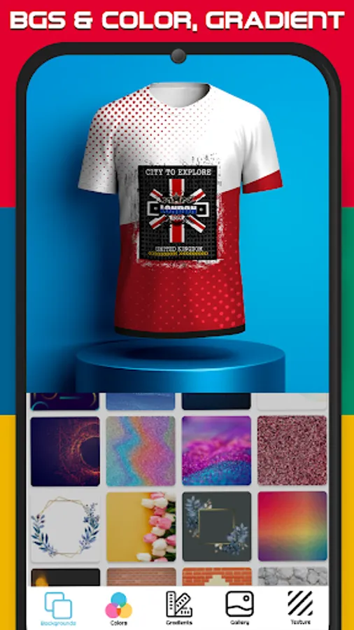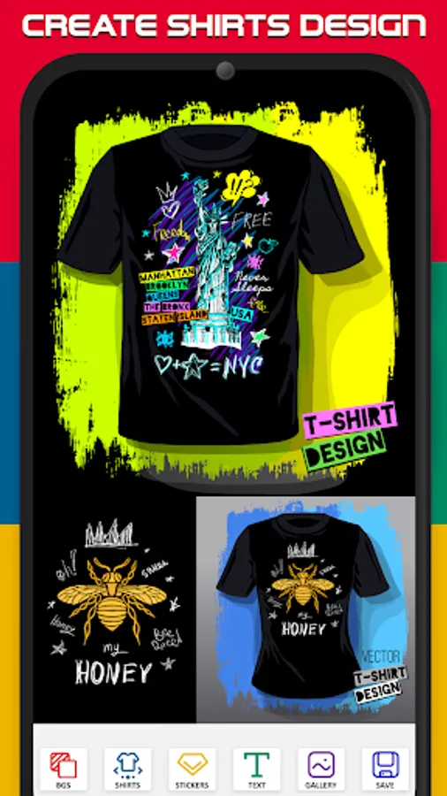 T-shirt design app has tons of Arts, Colors, T_Shirts & Textures.