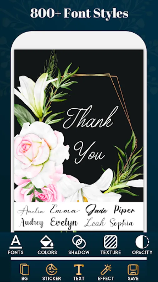 With Thank You card maker app you can add Name on photo and customize the cards using stylish thank you stickers and many other stylish font styles.
