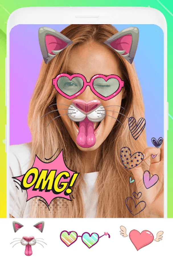- choose to add cute cat ears stickers, cat mouth stickers, cute glasses stickers or another interesting accessories;