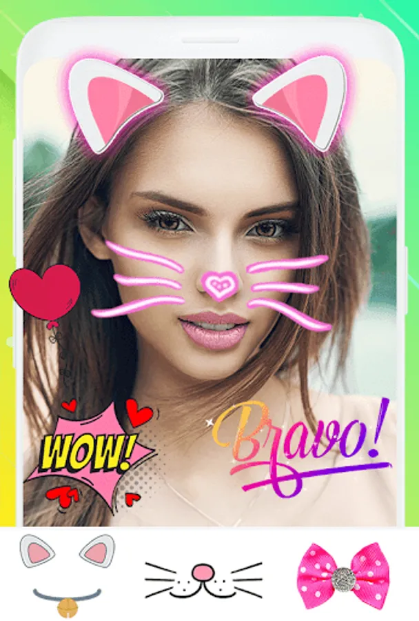 - create some fun photos with cool photo effects, add cat face effects on photo just in few seconds;