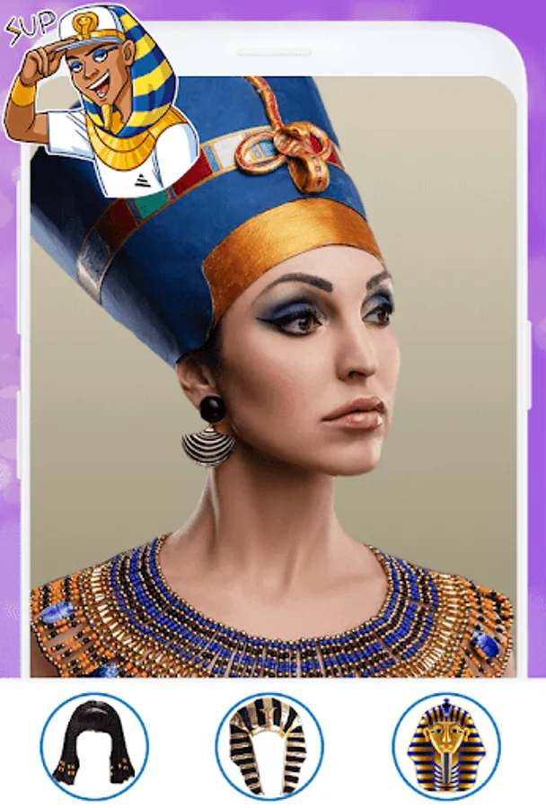 You can use your creativity to create art from your pictures, all your friends will be delighted to see how you managed to change your appearance. You can play the role of a goddess or a great pharaoh loved by all people. Egypt is a delight for all of us, use this application and you will feel all the intensity of this wonderful place where the pyramids have their home.