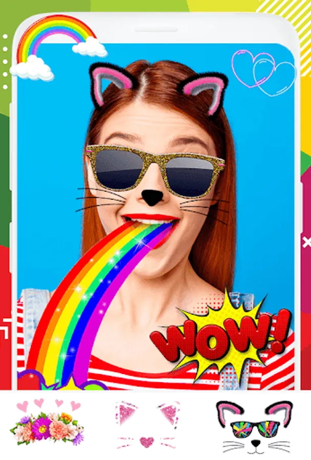 This sweet camera selfie filters app is a great edit tool, you can take awesome profile pictures for social media, all your friends will be very happy to see them. Use fantastic stickers to take photos with them and make cool selfies, you can take new pictures together with your friends.