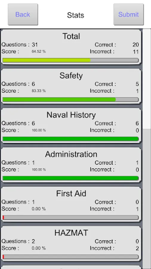 This guide will help you prepare for Seabee Combat Warfare test and boards. This program contains all common core information with references, outlined with the SCW PQS. A test mode that allows you to try your knowledge in a test enviroment. Tracks your stats to show you where you need improvement and where your strong points are.