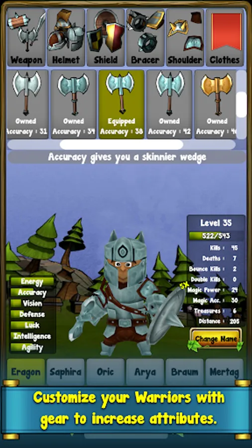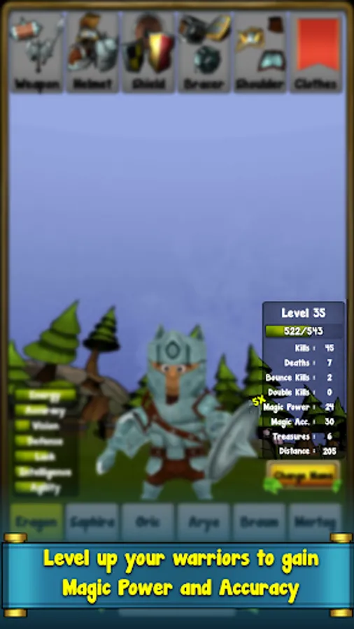 - Purchase wisely as your equipment will enhance your warriors skills.