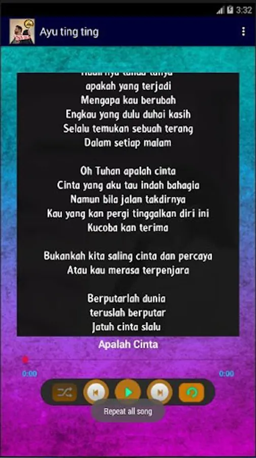 Entertainment application that contains the latest Ayu Ting Ting 2019 songs and is equipped with lyrics. This application is an OFFLINE music application that you can use without an internet connection. 2019's latest song, the latest song duet with Turkish singer Keremcem, which is currently the top search for Ayu Ting Ting fans. Now you are a big fan, you don't have to bother looking for more fun songs online, just download this Ayu Ting Ting application.