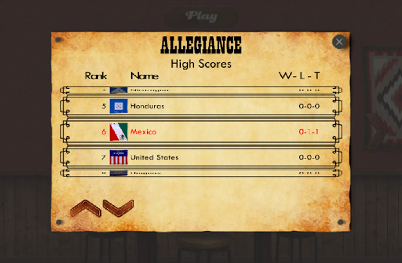 Immerse yourself into a very competitive and strategic, but also fun and entertaining Conquian experience in a Cantina environment wherein you will also have the ability to choose an Allegiance to play for; developed with an emphasis on single player play (no internet access required to play), play not only for yourself but for your country and demonstrate who the best Conquian players in the world are!