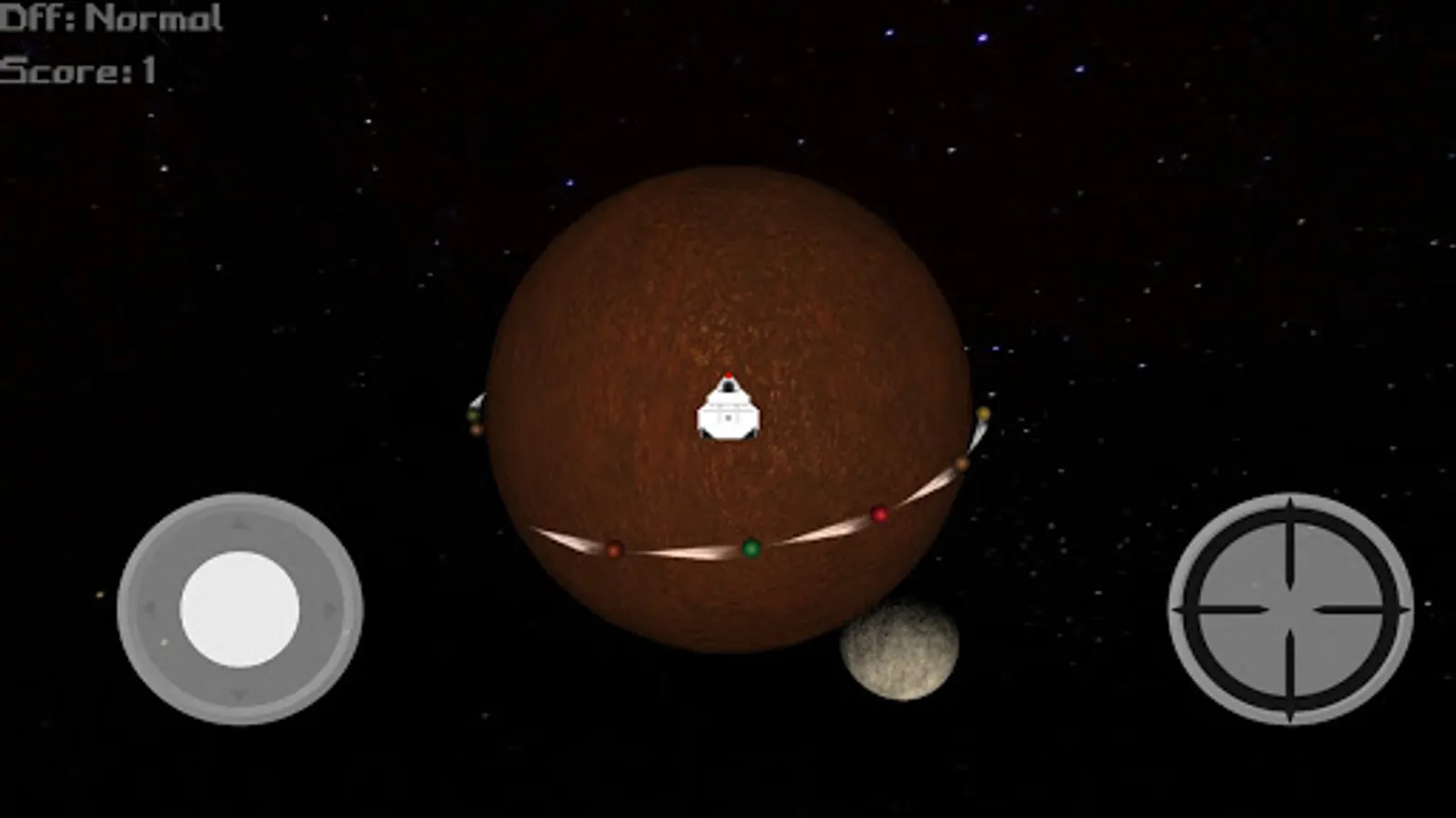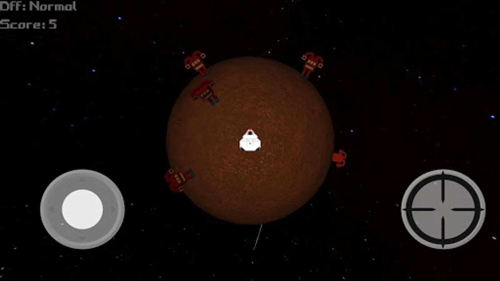 Your spaceshift can't escape from the planet's gravity, ¡Slide and dodge as many aliens as you can, don't let them take you! shoot them will only make more and more aliens appear, ¡They are everywhere! Also, something is wrong with mars, it's very small, maybe bullets can reach far away, bullets even may cross the planet or escape the orbit...