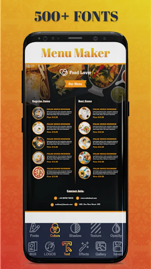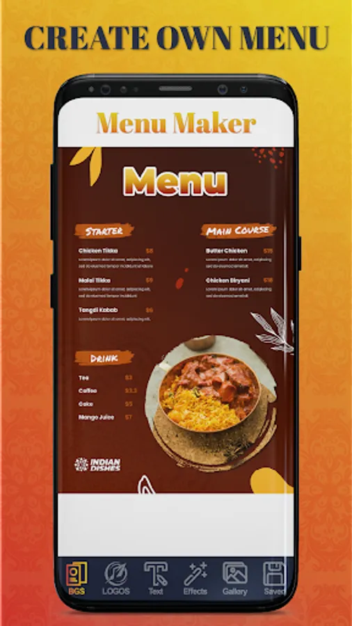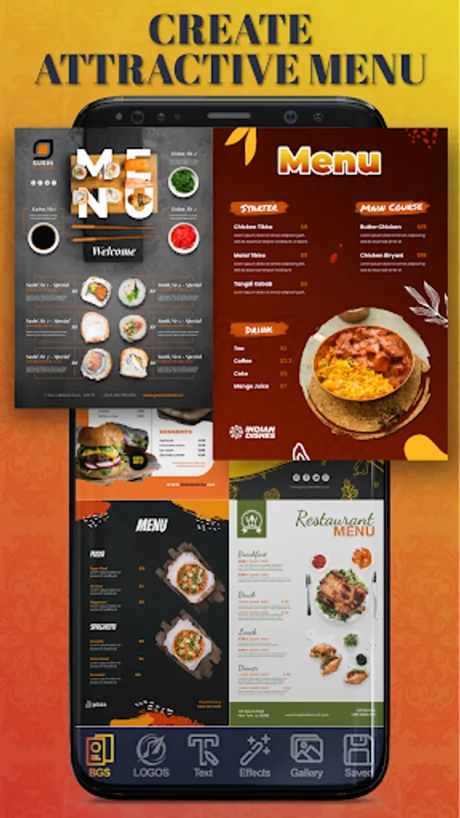 Create your own menu cards for your business easily using our menu card maker app for free and offline. There are lot of templates available, you just have to edit them and update your information & you are all done. Let Try now.