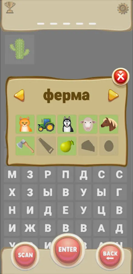 Scan barcodes at home or in the store. Each barcode drops a card with an object and letters (from 1 to 5 pieces). From these letters, collect the words that are shown on the cards.